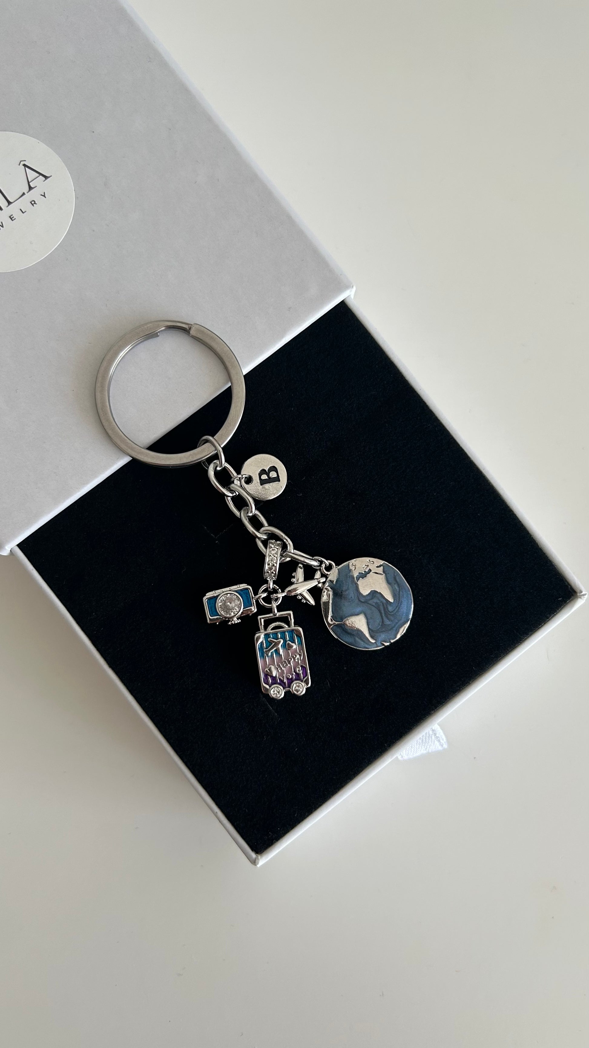 •Tek anahtarlıkta ; 1 adet anahtarlık, 1 adet harf, 1 adet Dünya charm ve 1 adet fotoğraf makineli Charm bulunmaktadır.